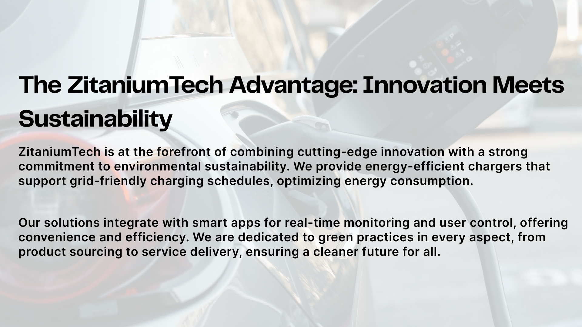 At ZitaniumTech, we offer a complete end-to-end service, simplifying your journey into the electric future. Our tailored solutions meet the diverse needs of residential, commercial, and fleet applications, all while upholding a steadfast commitment to quality, reliability, and sustainable technology.