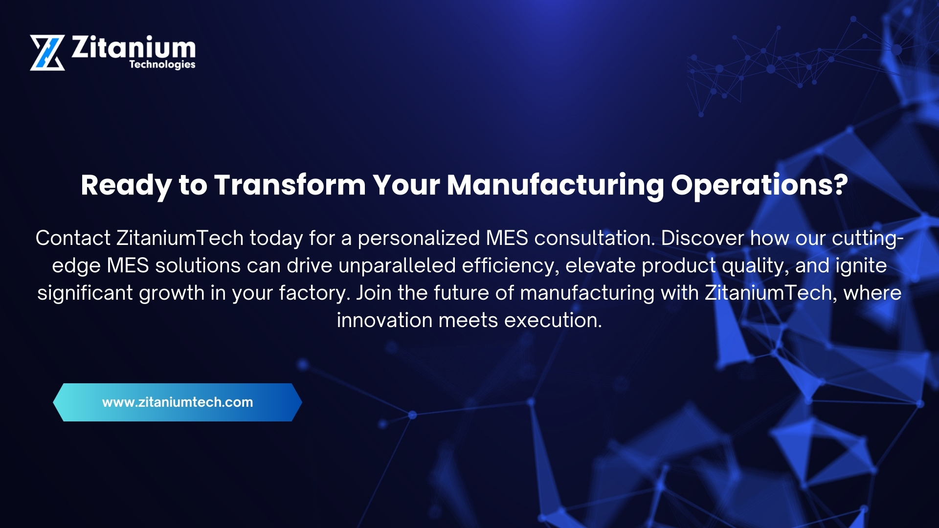 At ZitaniumTech, we empower manufacturers to unlock the full potential of digital transformation through advanced Industrial Automation and Manufacturing Execution System (MES) solutions. In an era where operational agility, real-time data, and smart factory capabilities define competitiveness, we deliver the technology and expertise that modern manufacturing demands. Our solutions enable real-time production monitoring, automated process control, quality assurance, traceability, and seamless integration with ERP, SCADA, PLCs, and IIoT systems. By eliminating manual processes and data silos, ZitaniumTech helps you increase productivity, reduce downtime, and make faster, data-driven decisions across your entire production lifecycle. Our modular MES platforms and automation technologies are designed to scale with your business, ensuring flexibility and future-proofing your factory operations.